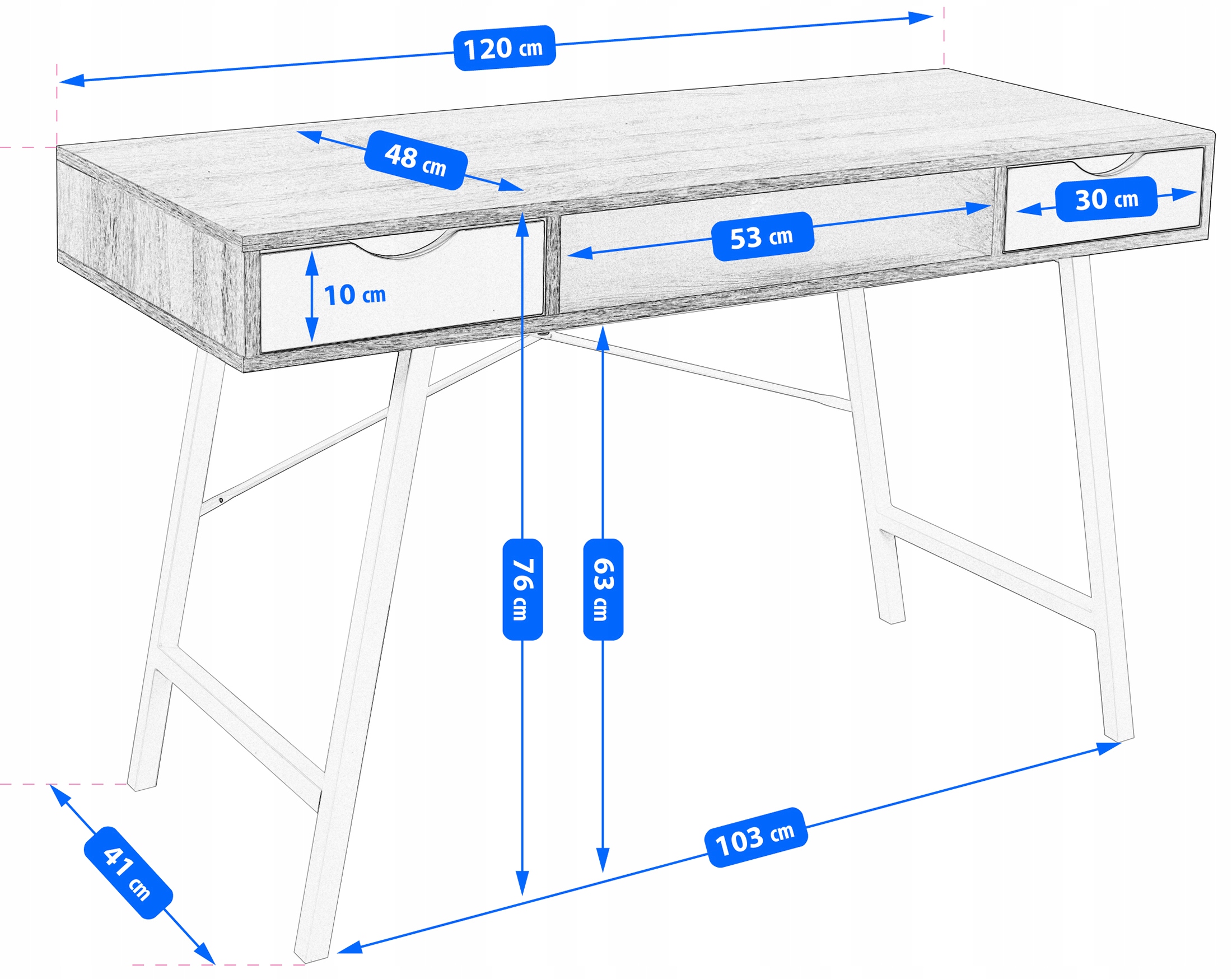 Biurko oferuje obszerną powierzchnię roboczą, dzięki czemu praca przy komputerze, nauka czy pisanie przebiegają wygodnie i bez zbędnych ograniczeń.