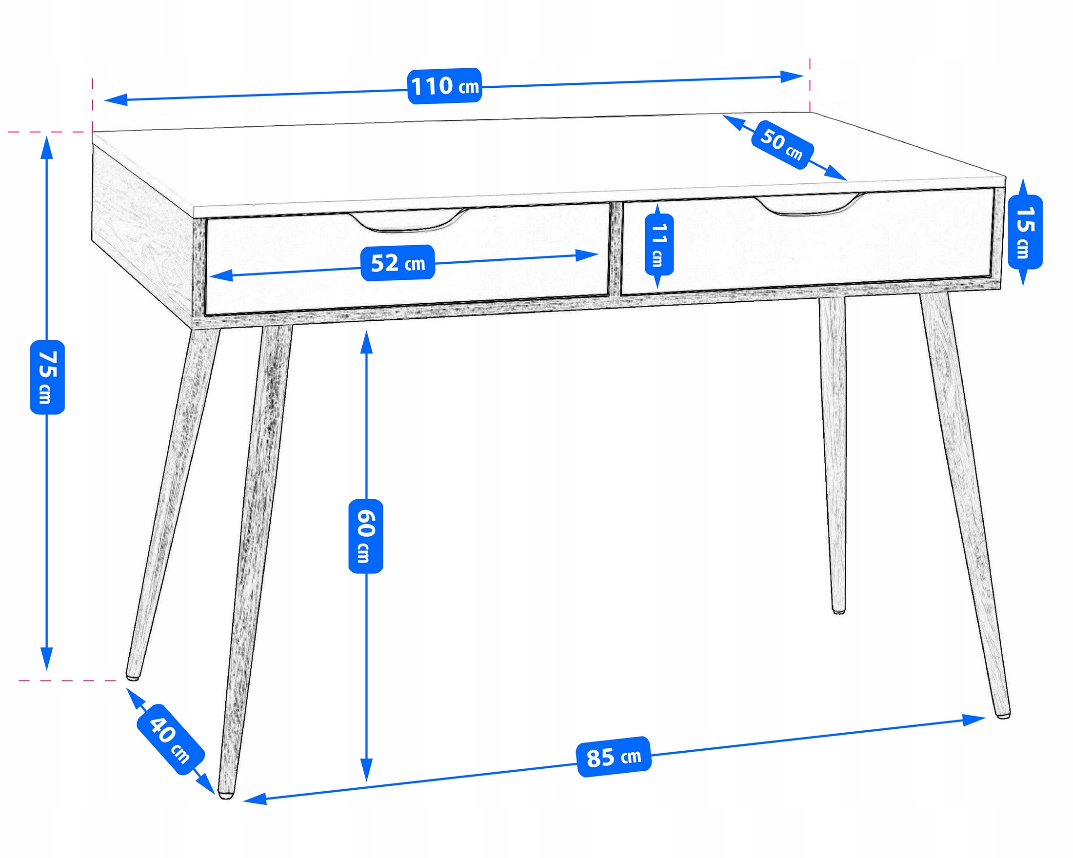 Biurko oferuje przestronną powierzchnię roboczą, idealną do pracy, nauki czy tworzenia.