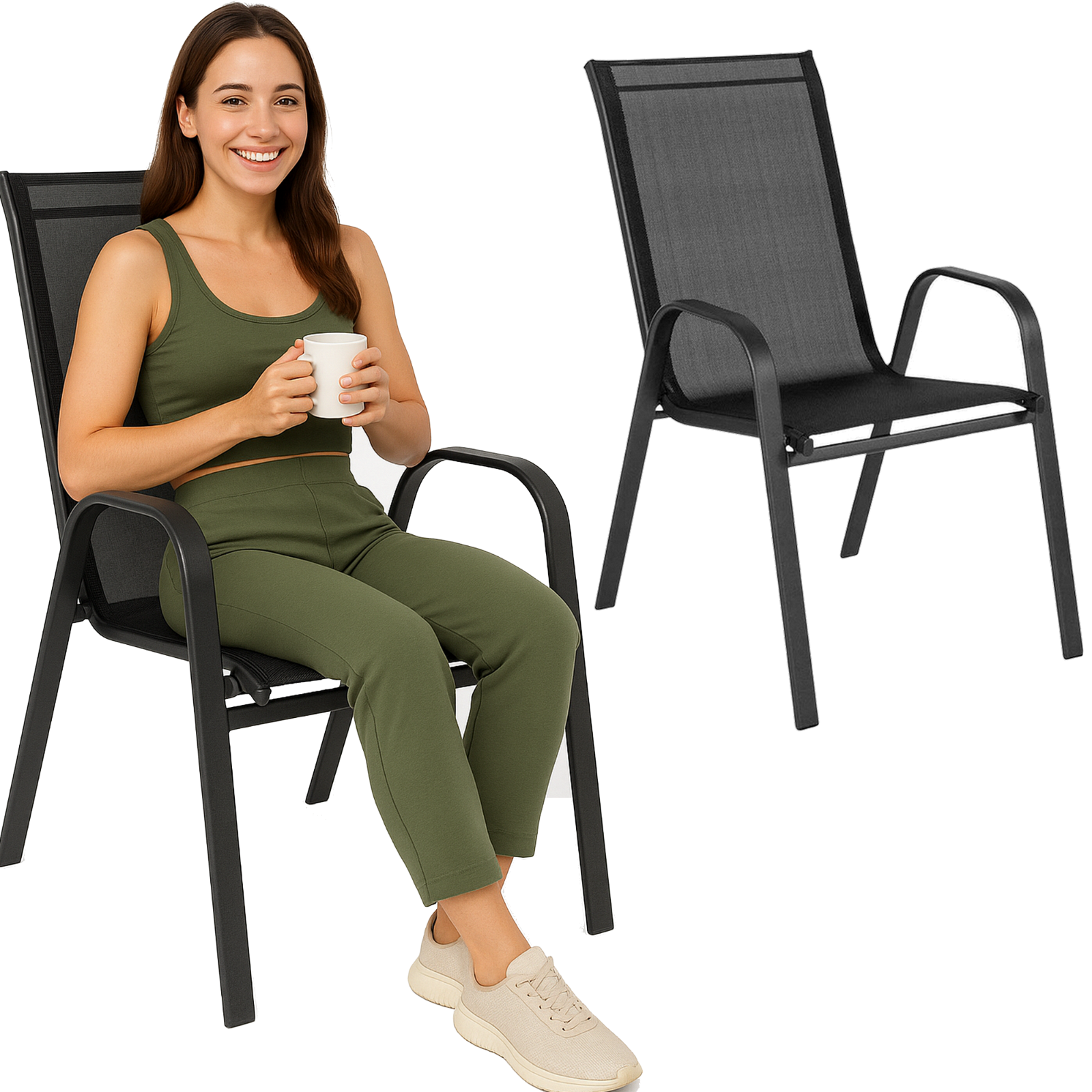 Wykonane z dbałością o każdy detal – solidna stalowa rama oraz poszycie z wytrzymałej plecionki textilene zapewniają wygodę siedzenia oraz odporność na warunki atmosferyczne.