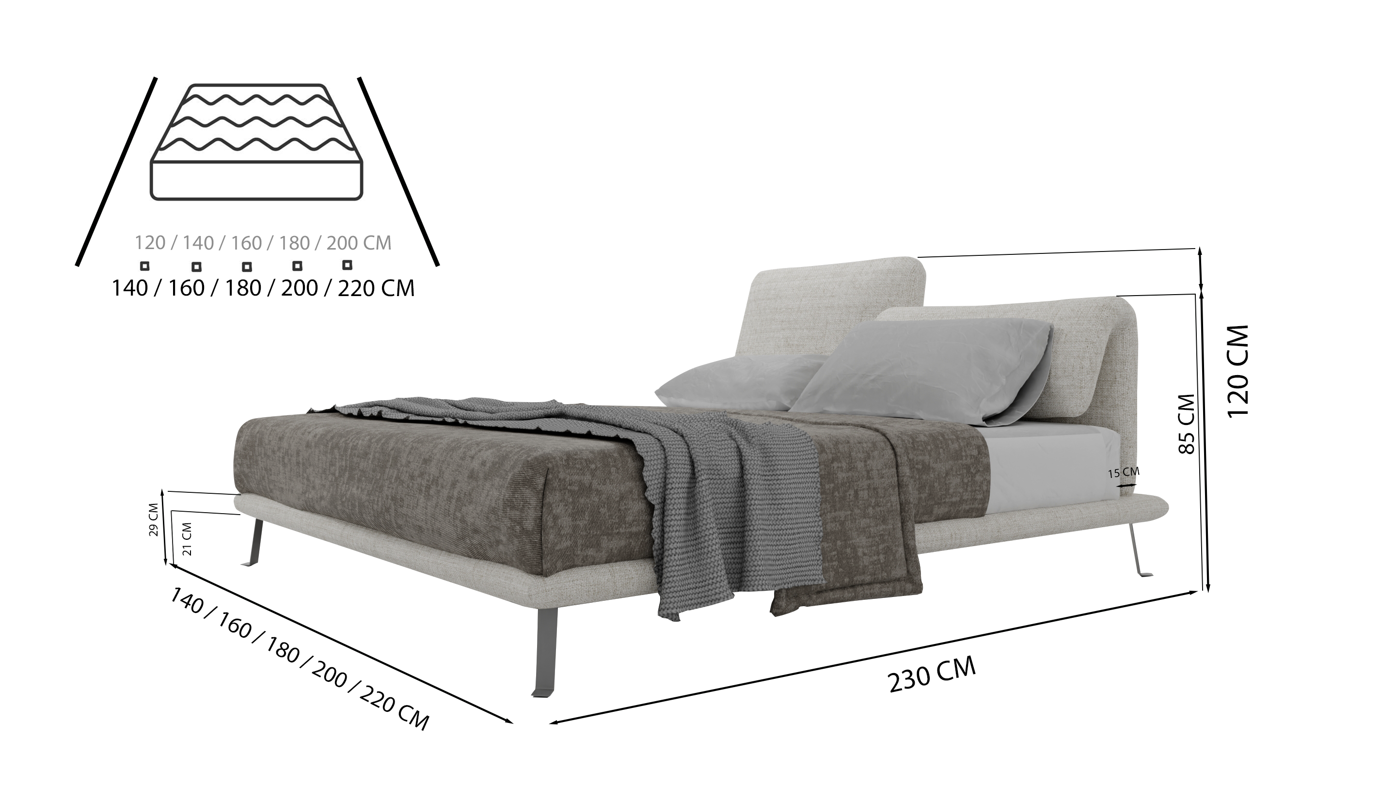 • 220 cm (materac 200 cm)