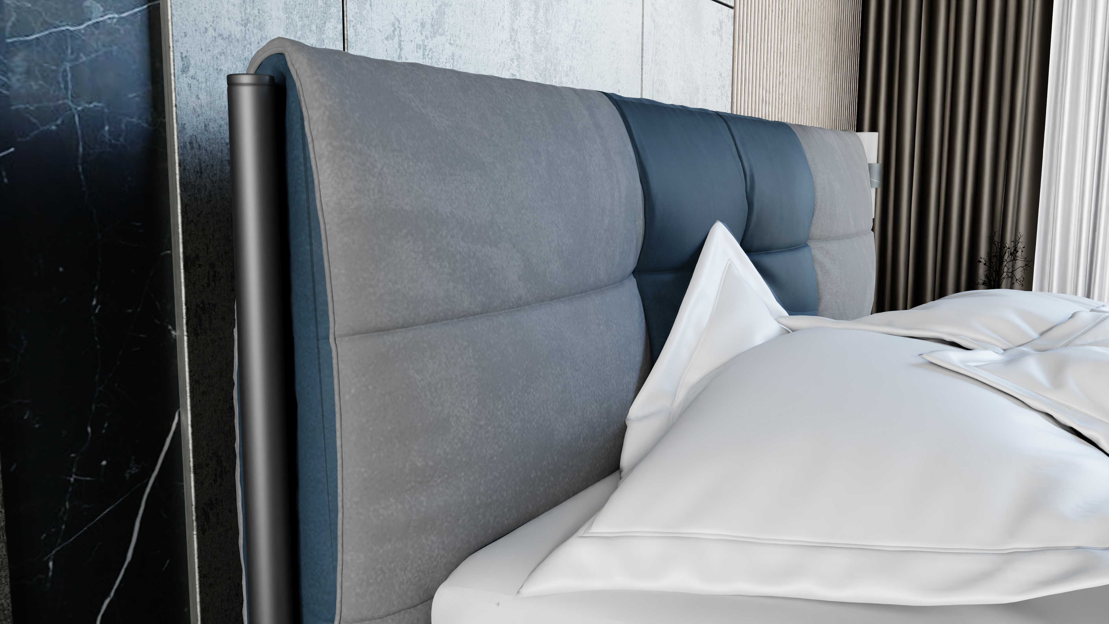 Łóżko tapicerowane EDEN to połączenie minimalistycznego designu z unikalną konstrukcją stalowej ramy