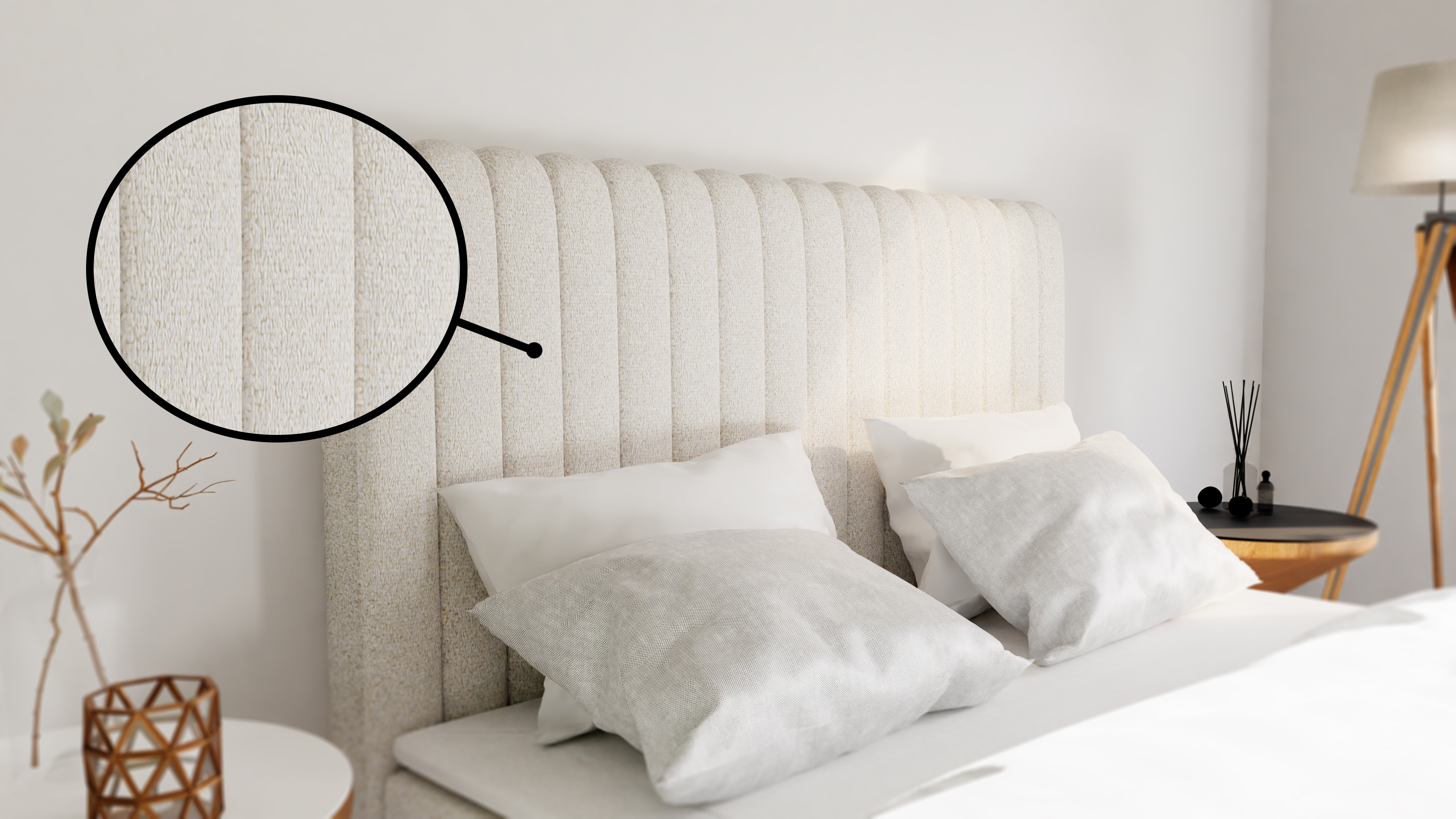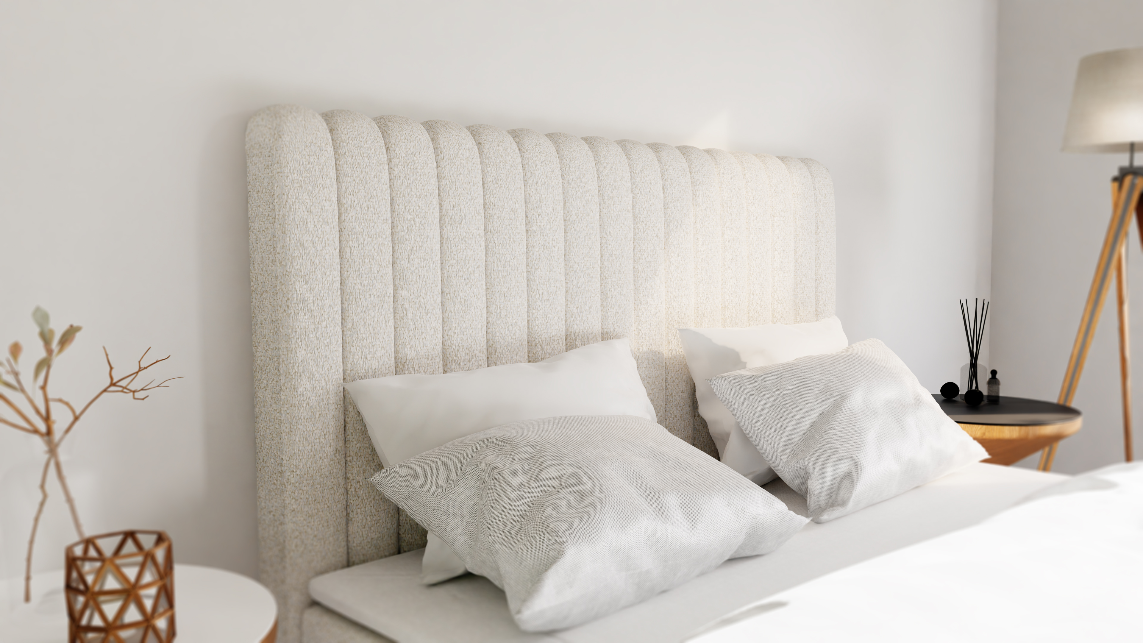 Łóżko kontynentalne SOMNUS wyróżnia się eleganckim zagłowiem, złożonym z osobno tapicerowanych, zaoblonych paneli połączonych ze sobą. To wyjątkowy detal, który harmonijnie komponuje się z różnymi aranżacjami wnętrz, dodając im klasy i charakteru.