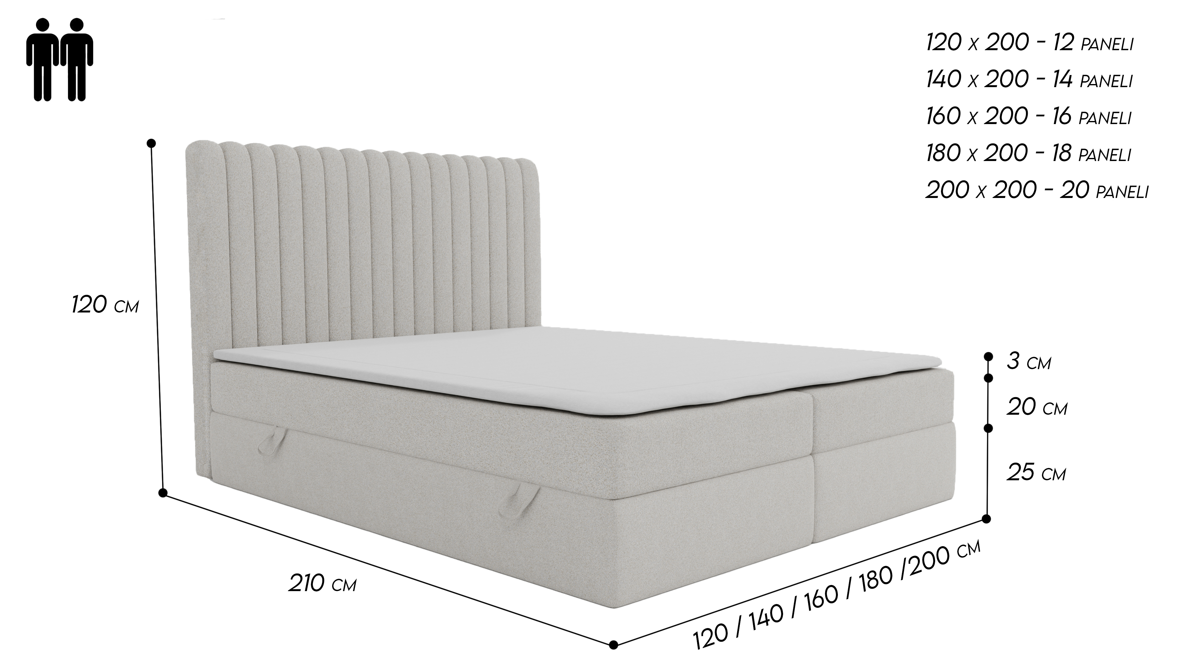 • Szerokość: 120 / 140 / 160 / 180 / 200 cm