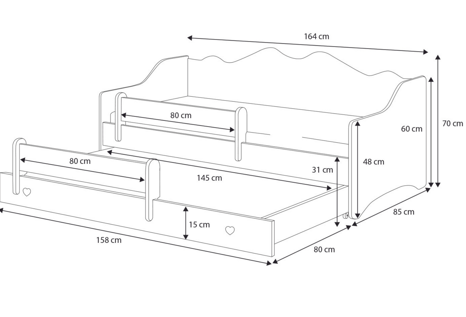 Dzięki solidnej konstrukcji i wytrzymałym materiałom, łóżko Eryk gwarantuje stabilność i długowieczność. Zaokrąglone brzegi oraz ruchoma barierka ochronna sprawiają, że maluch jest bezpieczny podczas snu, a elastyczny stelaż FLEX z listew sprężynujących zapewnia komfort i odpowiednie wsparcie. Dolna powierzchnia spania, mimo że nie jest przeznaczona do przechowywania rzeczy, stanowi idealne rozwiązanie do wygodnego spania dla rodzeństwa lub przyjaciół, którzy mogą wspólnie spędzać czas. Łóżko Eryk to połączenie elegancji, praktyczności i bezpieczeństwa, które będzie służyć przez lata.