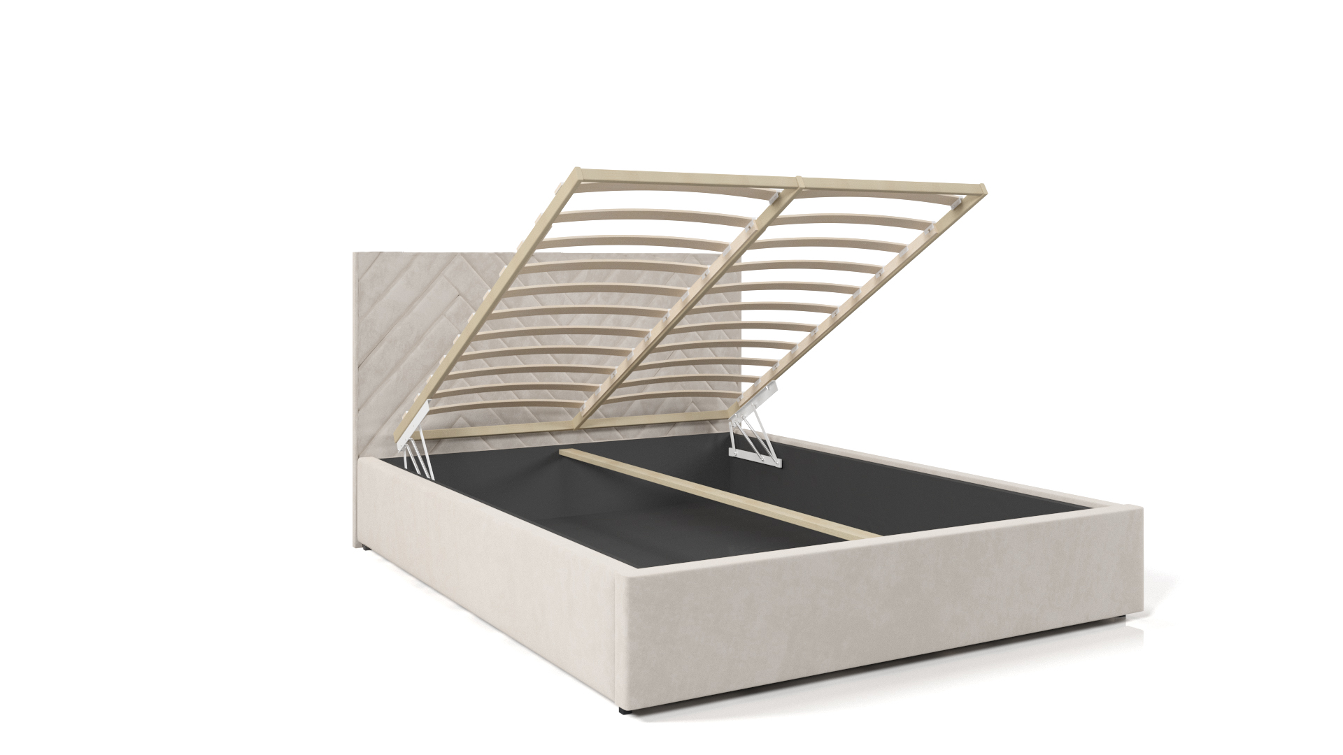 Łóżko BRAVO to model o wyjątkowym charakterze. Tapicerowane wezgłowie z ozdobnym wzorem jodełki przyciąga wzrok i nadaje wnętrzu niepowtarzalnego stylu.
