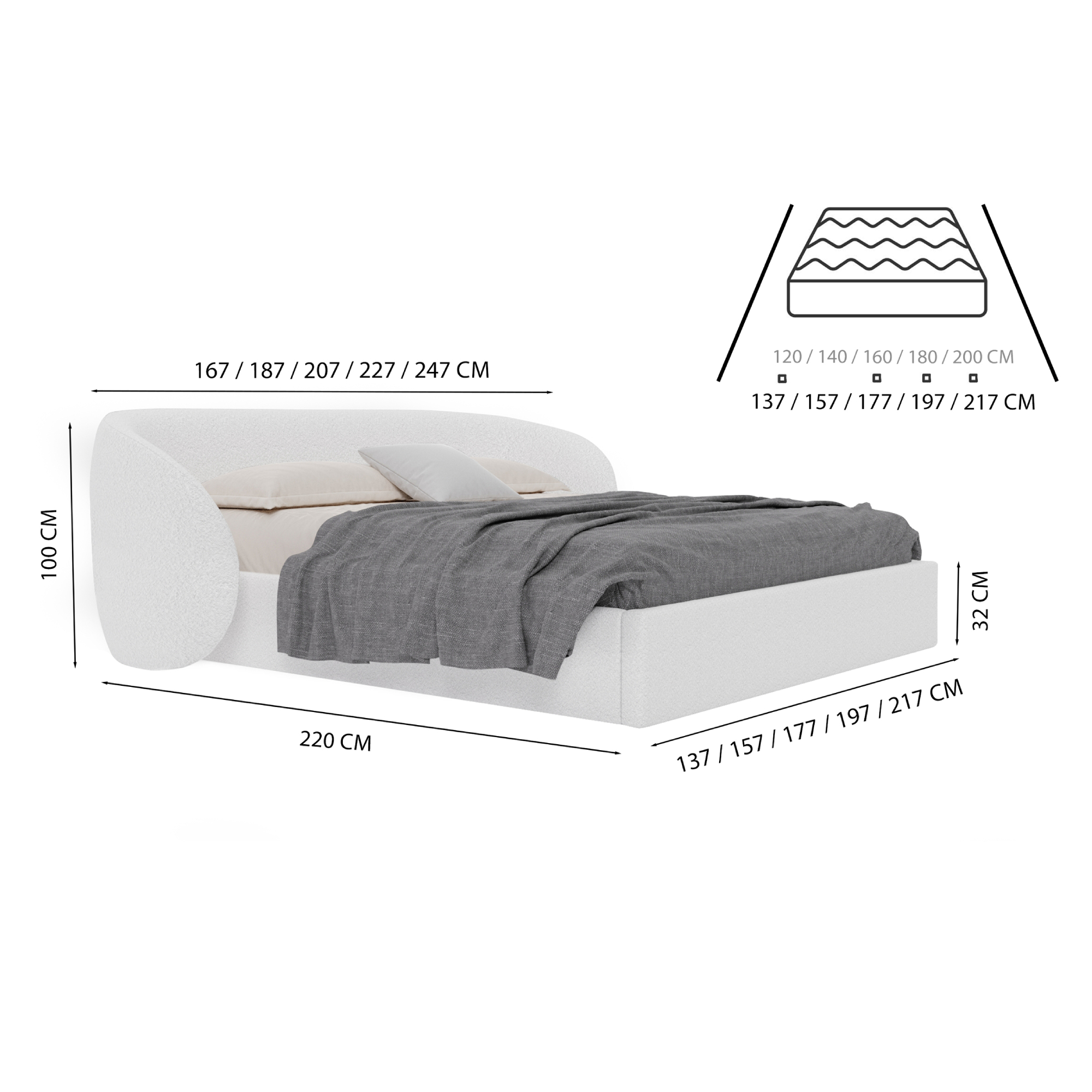 • 247 cm dla materaca 200 cm