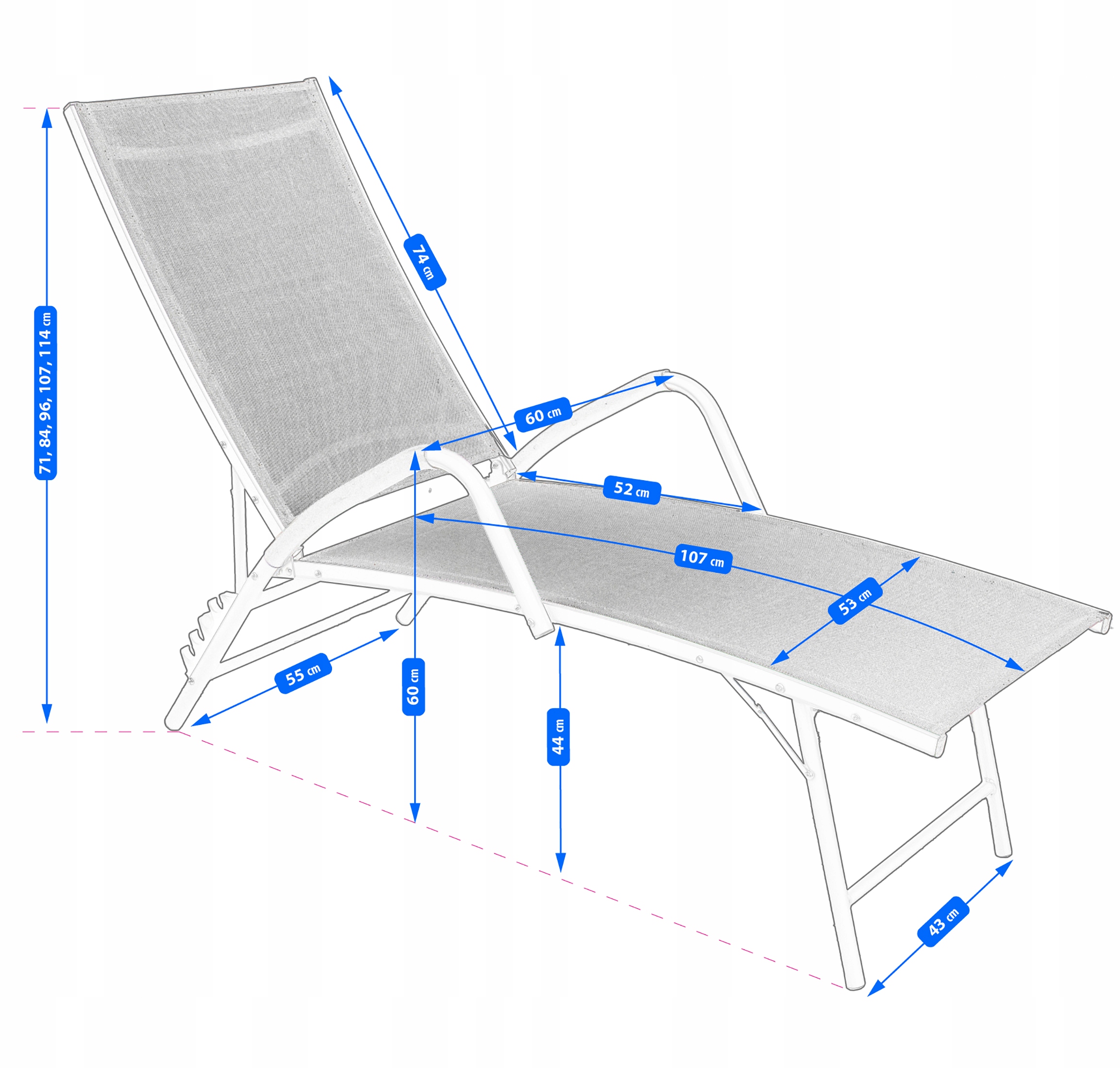 SKŁADANY LEŻAK OGRODOWY Z ALUMINIUM – REGULOWANE OPARCIE, FOTEL PLAŻOWY 1646 – KOWALCZYK MEBLE