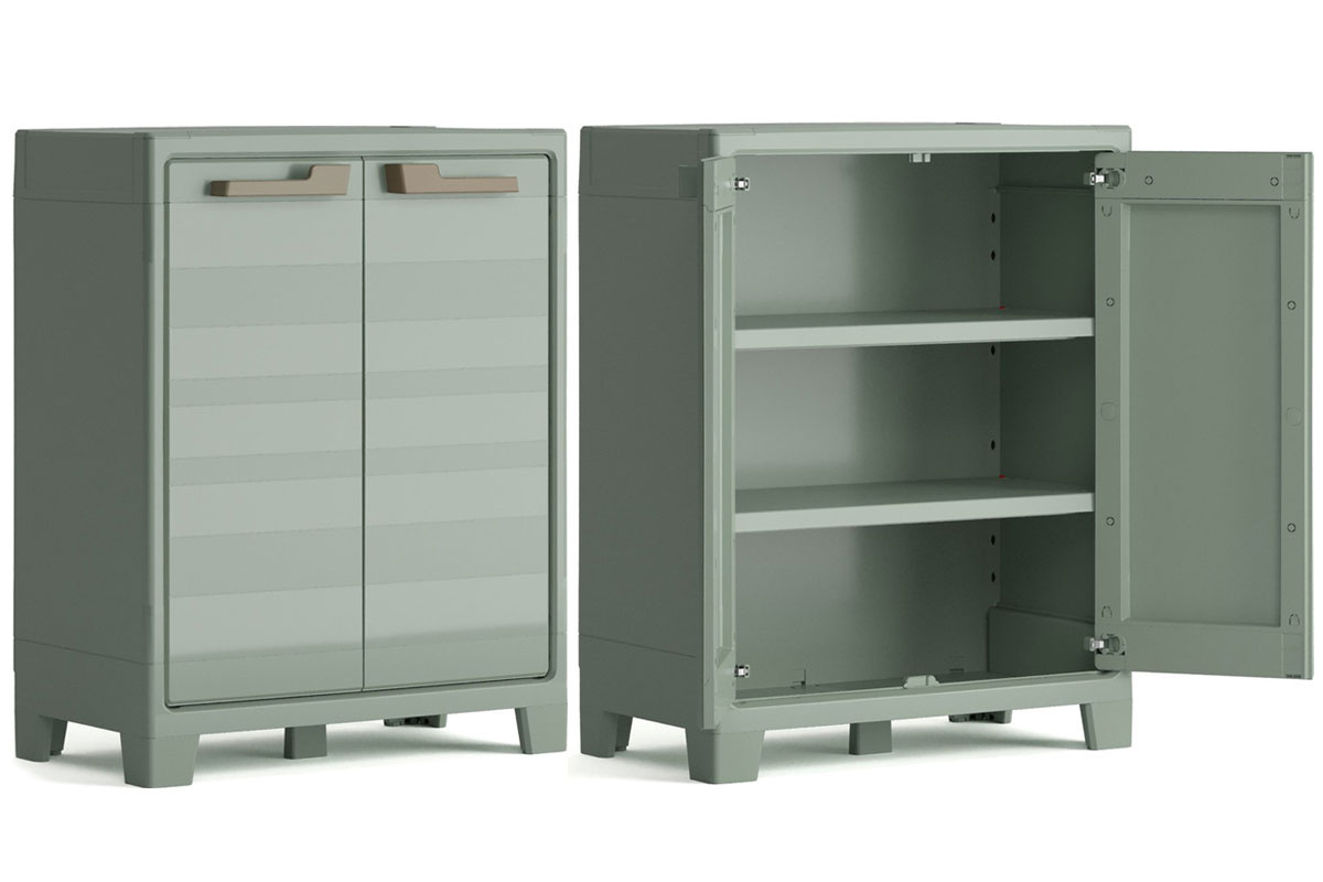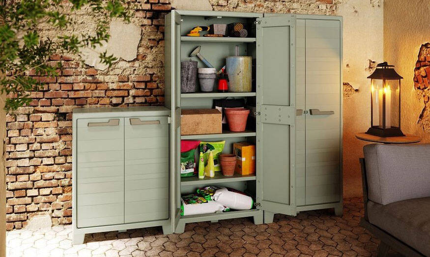 Dodatkowe funkcje: możliwość założenia kłódki|możliwość wypoziomowania|odporność na wilgoć i UV|składane półki|metalowe zawiasy|przystosowana do użytku zewnętrznego|certyfikat IPX3