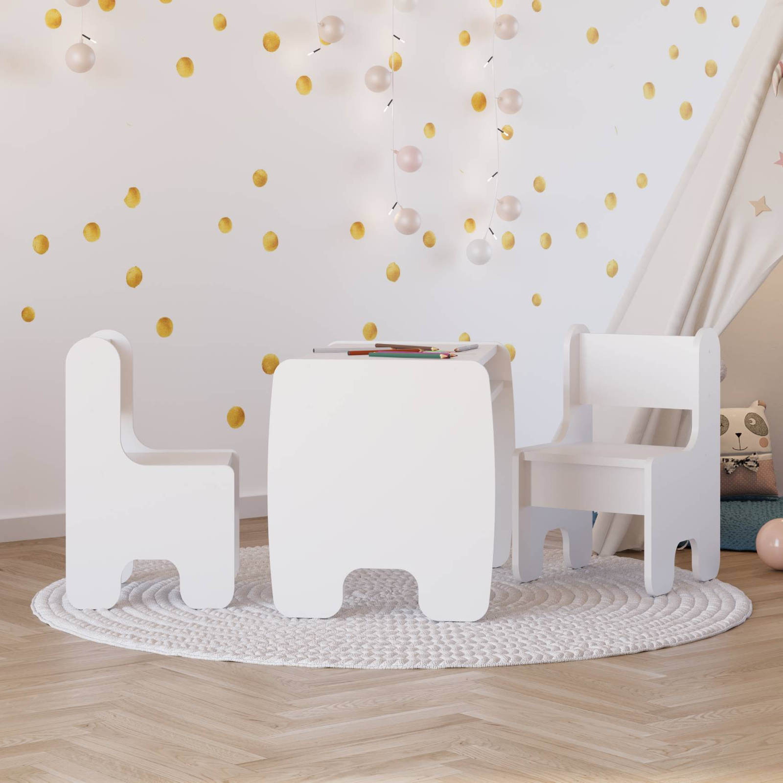 Zestaw mebli TIMI – stolik i krzesełko – to idealne rozwiązanie dla najmłodszych, łączące funkcjonalność z estetyką. Dzięki uniwersalnemu designowi doskonale wpisuje się w aranżację pokoju dziecięcego, tworząc komfortowe miejsce do nauki, rysowania i zabawy. Solidna konstrukcja oraz starannie dopracowane detale sprawiają, że meble te będą służyć przez długi czas, zapewniając wygodę i bezpieczeństwo podczas codziennych aktywności dziecka.